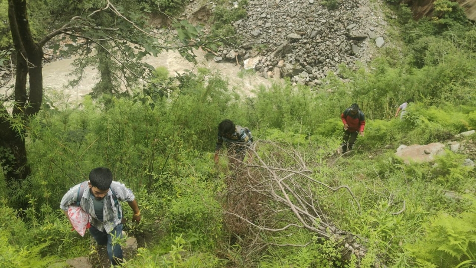 सोनगाड-डबरानी के बीच में इस तरह पहाड़ी चढ़कर आवाजाही कर रहे लोग। स्रोत सुधि पाठक