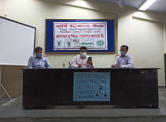 लॉकडाउन में 30 अप्रैल, 2020 को कृषि विज्ञान केंद्र की ओर से रिलायंस फाउंडेशन के सहयोग से डुंडा विकासखंड के डांग, ओल्या, मसून और जसपुर गांव के 25 किसानों के लिए डायल आउट टेलीकॉन्फ्रेंसिंग के माध्यम से वार्ता की गई। किसानों से आगामी महीनों में किये जाने वाले कार्यों को लेकर चर्चा की गई। इस दौरान रबी की कटाई, खरीफ सीजन हेतु कार्ययोजना, खेतों की तैयारी, मृदा परीक्षण, कीट और व्याधियों से रोकथाम, अरहर समेत नकदी फसलों की बुवाई जैसे तमाम महत्वपूर्ण विषयों पर डायल आउट टेलीकॉन्फ्रेंसिंग के माध्यम से बातचीत की गयी