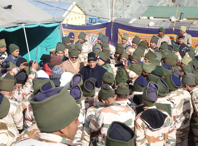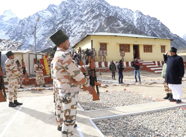 चीन सीमा पर तैनात हिमवीरों के साथ नए साल का जश्न मनाने और उनका उत्साहवर्द्धन करने के लिए केंद्रीय गृह मंत्री राजनाथ सिंह नेलांग बार्डर पहुंचे। उन्होंने जवानों संग नाश्ता भी किया।