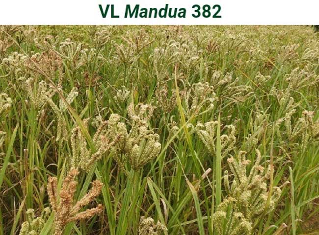 भूरे रंग के वीएल मंडुवा-324 के प्रति 100 ग्राम में कैल्शियम 294 मिलीग्राम और प्रोटीन 6.6 फीसद है। जबकि सफेद मंडुवा की वीएल मंडुवा-382 के प्रति 100 ग्राम में कैल्शियम 340 ग्राम और प्रोटीन सामग्री 8.8 फीसद है। उन्होंने कहा कि एक सफेद अनाज जीनोटाइप होने के नाते, वीएल मंडुवा-382 किसानों को भूरे रंग के मंडुवे की किस्मों के लिए एक नया विकल्प प्रदान करेगा। अपने उच्च पौष्टिक मूल्य और सफेद रंग के दाने के चलते यह भूरे रंग के बीज वाली किस्मों की तुलना में बहुत अधिक पसंद की जाने वाली प्रजाति होगी।