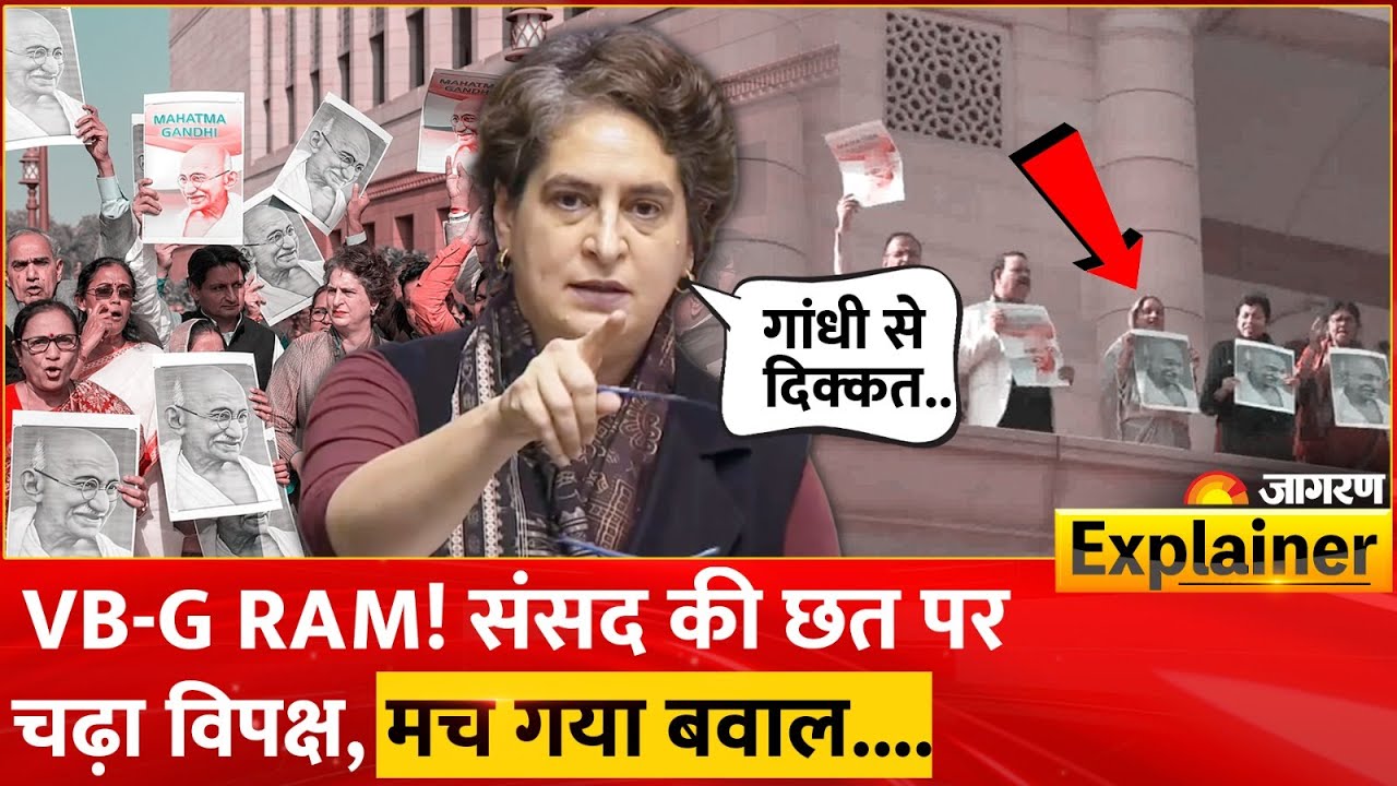 VB-G RAM को लेकर संसद में विपक्ष का प्रदर्शन, हाथ में गांधी का पोस्टर लेकर मचाया बवाल!