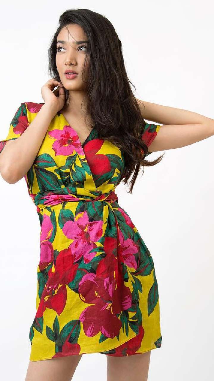 मेघा शंकर की ये शॉर्ट फ्लावर प्रिंटेड ड्रेस समर के लिए बिल्कुल परफेक्ट है। आप समर में इस तरह की ड्रेस कैरी कर सकती हैं।