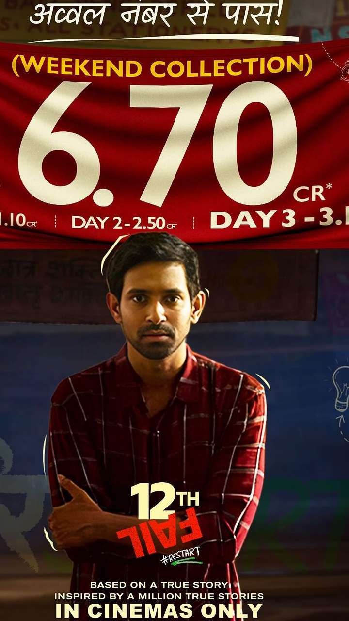 सच्ची कहानी पर आधारित फिल्म ट्वेल्थ फेल बॉक्स ऑफिस पर धमाल मचा रही है। बीते शनिवार और रविवार को फिल्म का कलेक्शन अच्छा रहा।