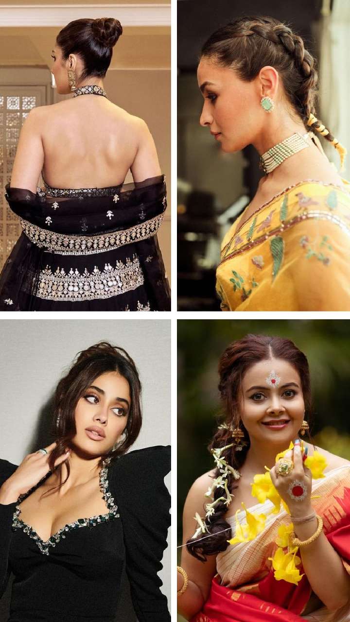 स्टाइलिश और क्लासिक हेयर स्टाइल में से एक हाफ अप हाफ डाउन भी शामिल है। इस तरह के हेयर स्टाइल इंडियन लुक पर खूब जचती हैं। यह हेयर स्टाइल भी इस साल काफी फेम में रही है।