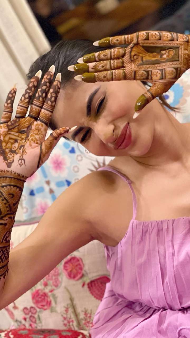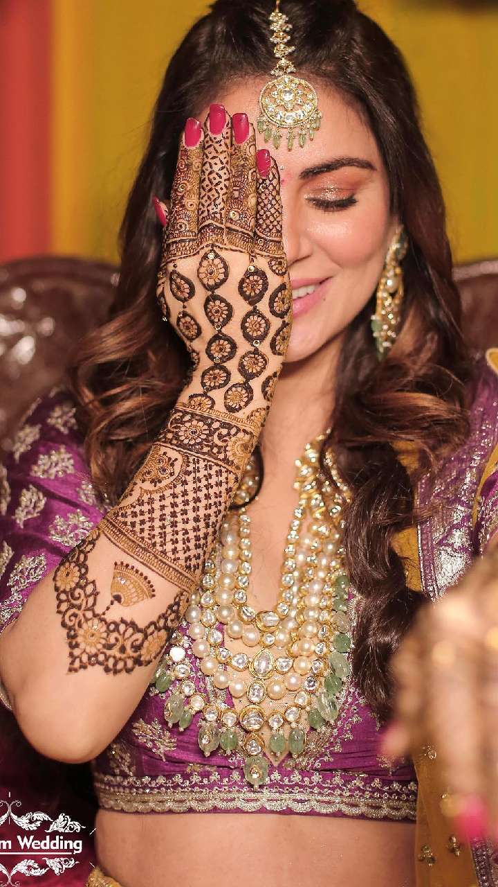 घर की शादी में हर लड़की अपने हाथों में हैवी डिजाइन की मेहंदी लगाना पसंद करती है। आप भी श्रद्धा आर्य जैसी मेहंदी से इंस्पायर होकर हाथों को मेहंदी से सजा सकती हैं।