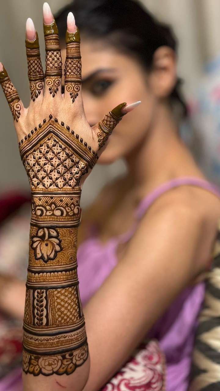 अगर आपके घर में भाई की शादी है, तो यह मेहंदी डिजाइन एकदम परफेक्ट ऑप्शन है। मेहंदी में पतले-पतले डिजाइन के बीच बोल्ड डिजाइन आंखों को काफी अट्रैक्ट करेगा।