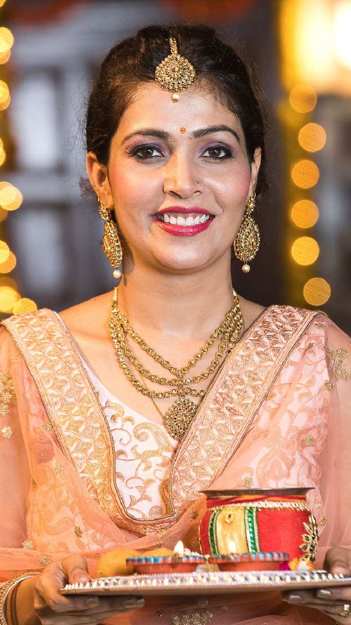 करवाचौथ पर नेचुरल और हल्का मेकअप करें। BB क्रीम या टिंटेड मॉइश्चराइजर हल्का आईलाइनर और मस्कारा न्यूड या हल्का गुलाबी लिपस्टिक लगाएं।