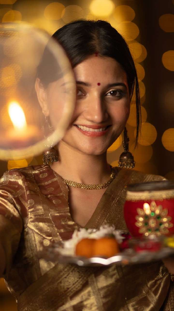 बालों पर हल्का हेयर ऑयल या सेरामाइड सीरम लगाएं। आप हल्की ब्रेड या साइड ट्विस्ट में हेयर स्टाइल करके फेस्टिव लुक पा सकते हैं।