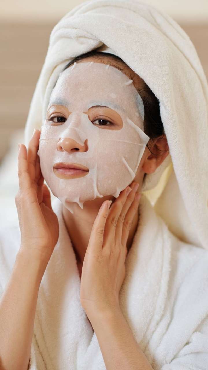 करवाचौथ पर दमकती त्वचा पाने के लिए फेस पर हल्का मॉइश्चराइजिंग मास्क लगाएं। एलोवेरा, दही या शहद का मास्क त्वचा को नमी देता है और ग्लो लाता है।