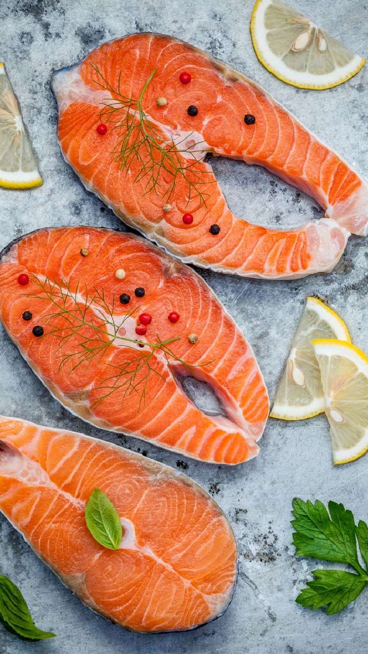 सैल्मन, मैकेरल और सार्डिन जैसी फैटी फिश में ओमेगा-3 फैटी एसिड्स पाए जाते हैं। यह आंखों की सूखापन, सूजन और आंखों की थकान को कम करने में मदद करता है।