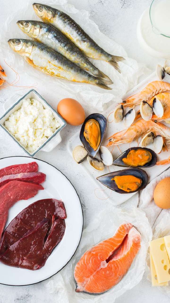 सैल्मन, टूना और सार्डीन जैसी मछलियों में B12 काफी मात्रा में होता है। नॉन-वेज खाने वालों के लिए यह सबसे तेज सोर्स है।