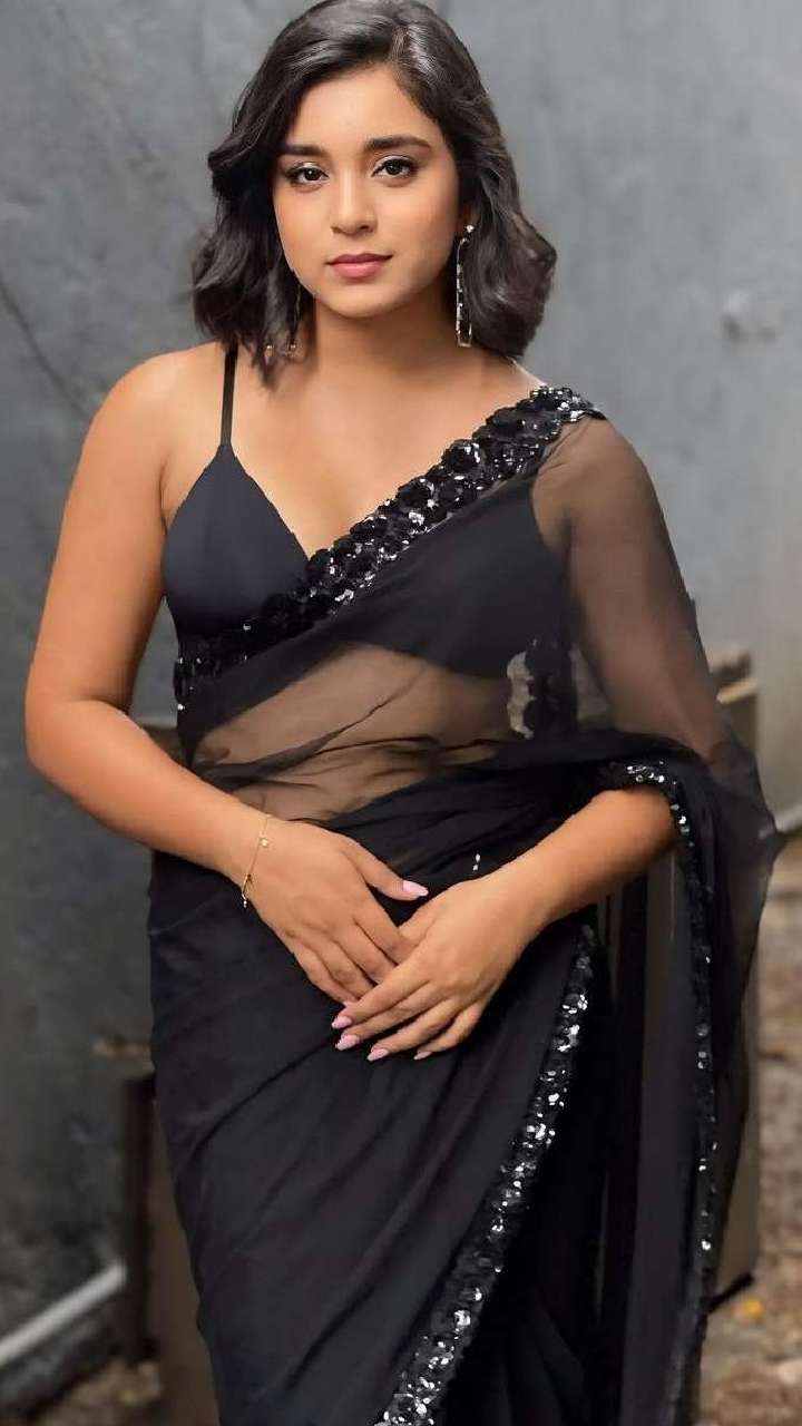 एक्ट्रेस का यह राउंड नेक ब्लाउज देखने में बेहद खूबसूरत लुक दे रहा है। आप सिंपल साड़ी को स्टाइलिश लुक देने के लिए ब्लाउज को कैरी कर सकती हैं।