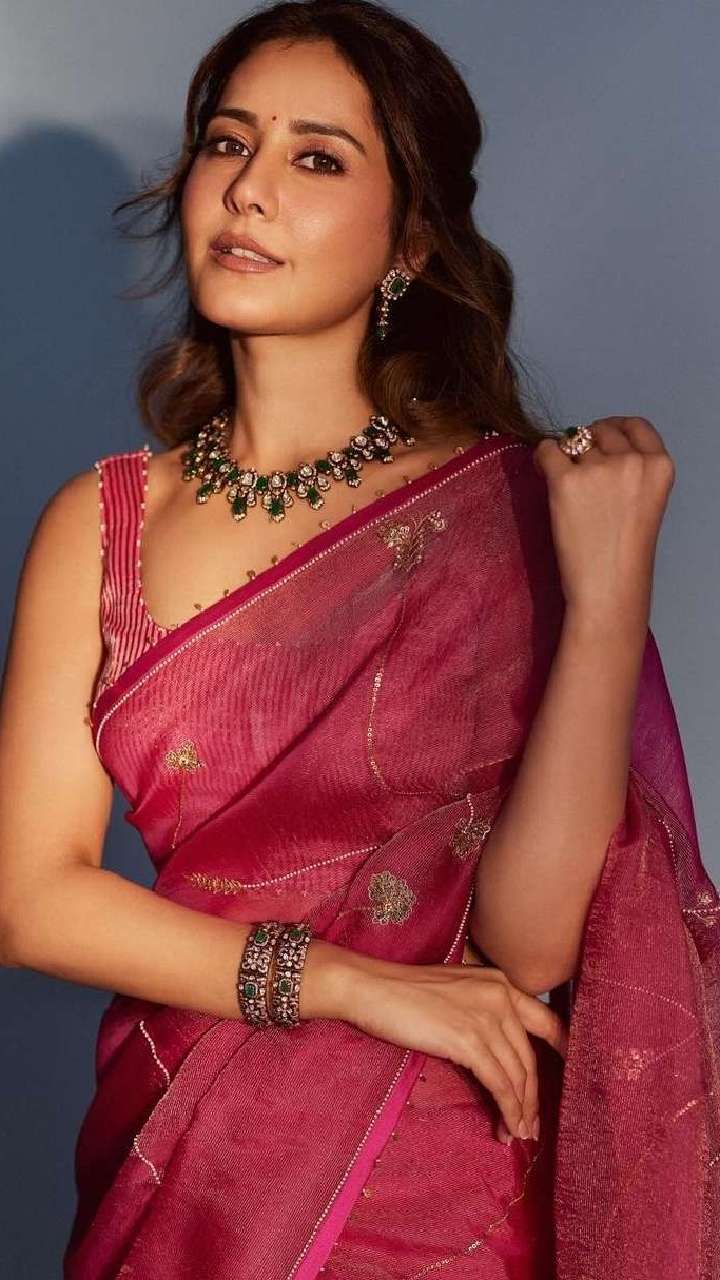 एक्ट्रेस इस डिजाइनर स्वीटहार्ट ब्लाउज में बेहद खूबसूरत लग रही हैं। शादी और फंक्शन में ग्लैमरस लुक के लिए आप ऐसे हॉट लुक देने वाले ब्लाउज को ट्राई करें।