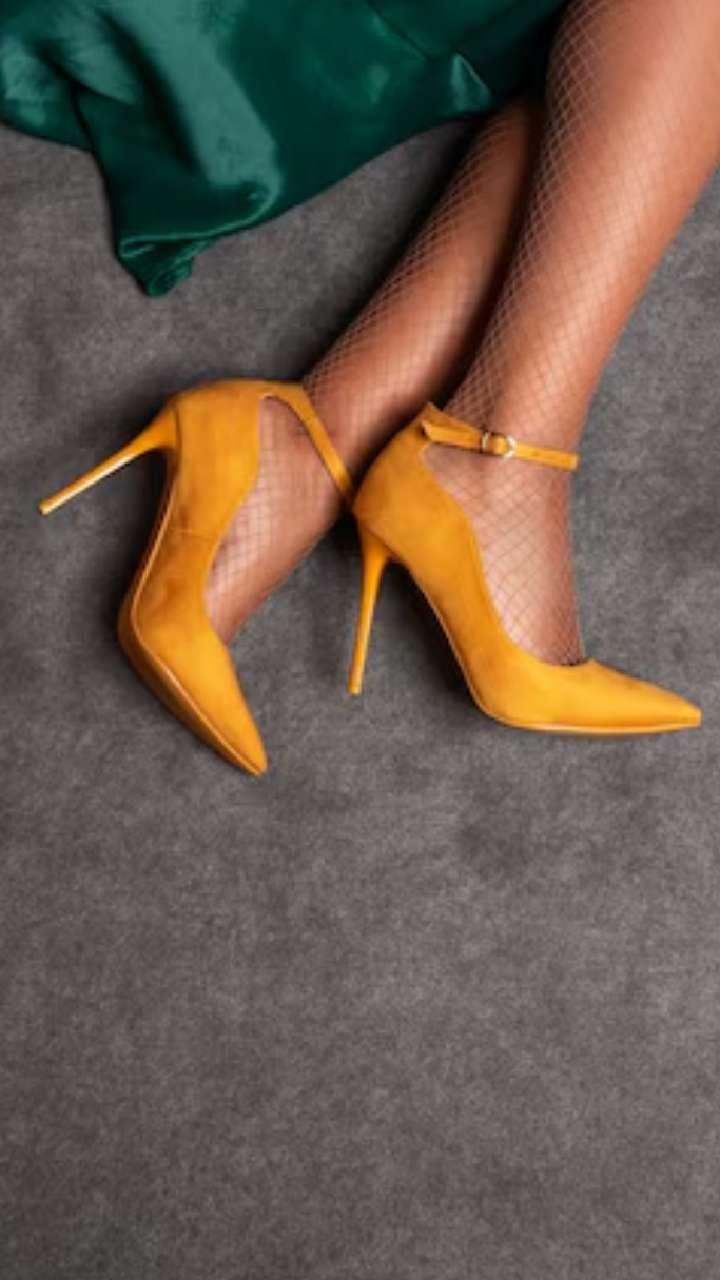 इन येलो कलर की हील्स को आप किसी भी ड्रेस के साथ स्टाइलिश लुक कैरी करने के लिए पहन सकती हैं। यह पार्टी में शॉर्ट ड्रेस के साथ पहनने के लिए एकदम बेस्ट है।