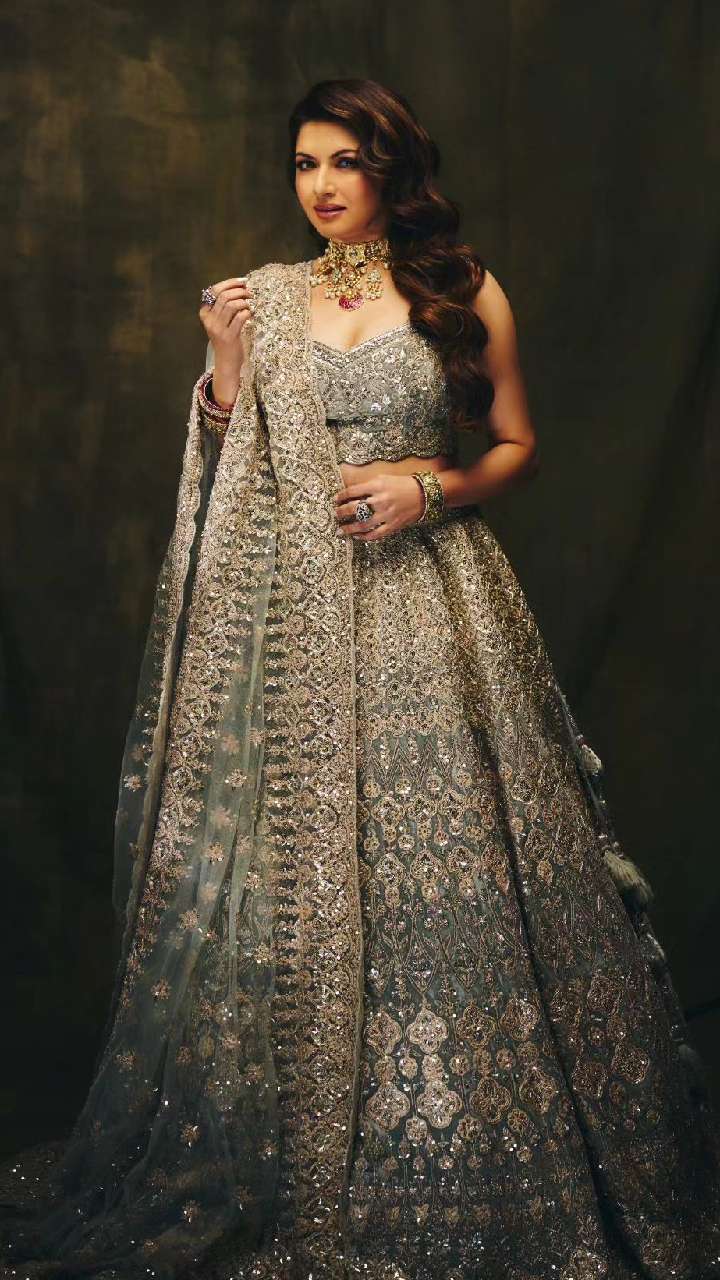 अभिनेत्री का ग्रे हैवी लहंगा यंग गर्ल्स से लेकर हर उम्र की गर्ल्स कैरी कर सकती हैं। ये आपके लुक में चार चांद लगा देगा।