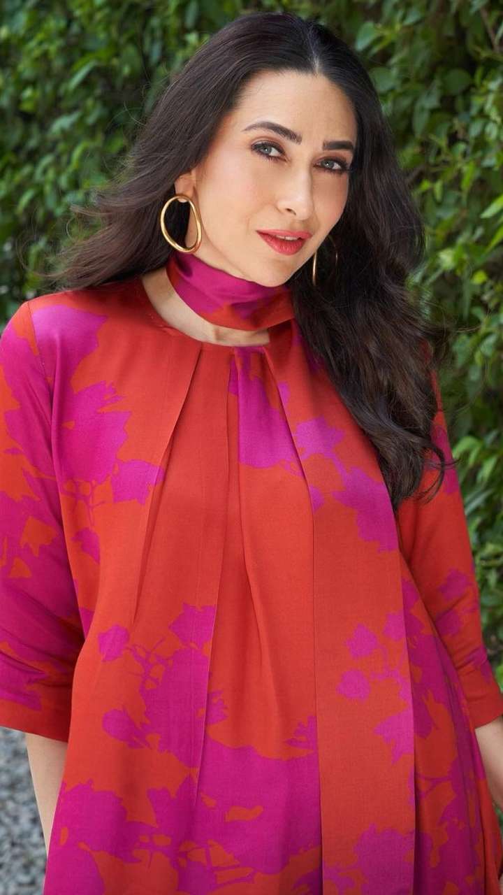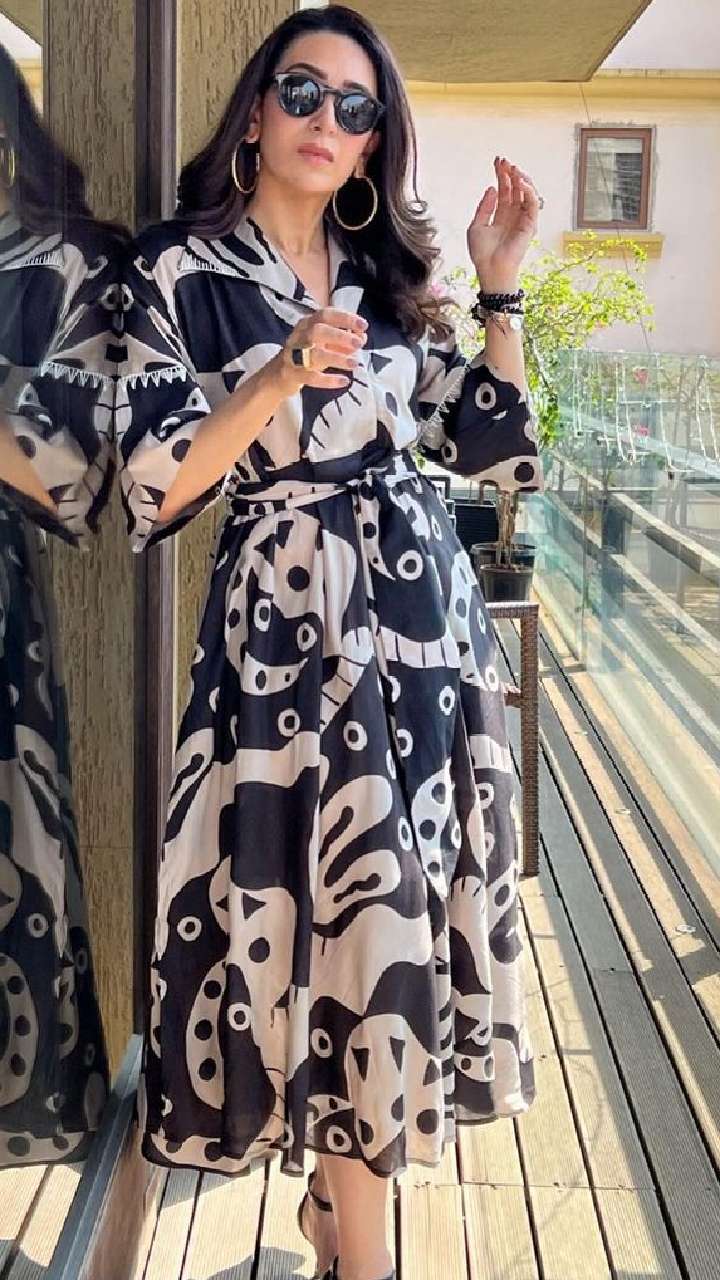 इस ब्लैक इन व्हाइट बन पीस ड्रेस में करिश्मा काफी यंग नजर आ रही हैं।