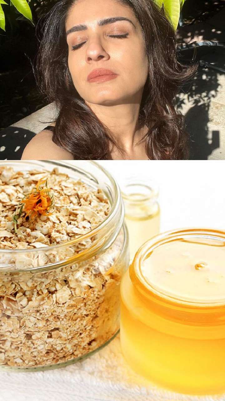 रवीना स्किन को चमकदार बनाने के लिए घर पर बना होममेड फेस पैक यूज करती हैं। जो कि ओटमील , हनी और कच्चे दूध से बनकर रेडी किया जाता है।