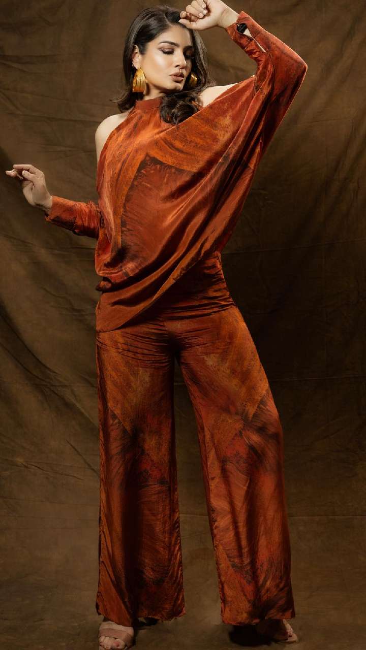 एक्ट्रेस ने हाल में इंस्टाग्राम पर ब्राउन कलर के इस को ऑर्ड सेट में अपना ग्लैमरस लुक शेयर किया है।