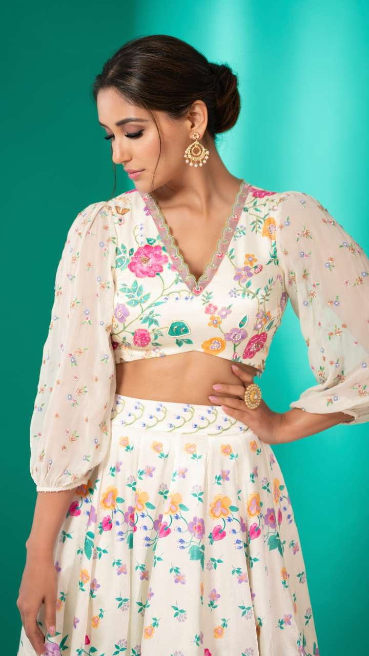 कॉकटेल पार्टी में डीवा के जैसा फ्लोरल पैच ऑफ शोल्डर गाउन आपके लुक में हॉटनेस का तड़का लगा देगा। इसके साथ उन्होंने स्मोकी आई टच दिया है।