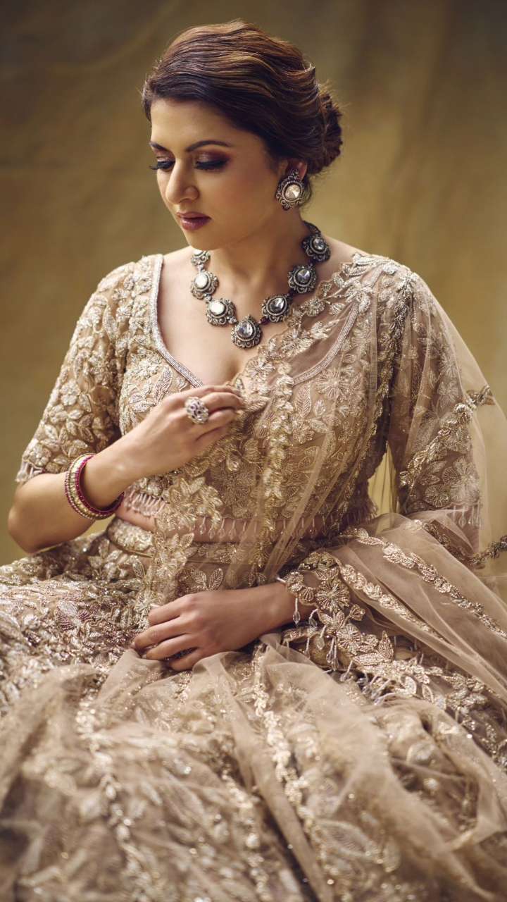 अभिनेत्री ब्लू कलर के हैवी वर्क लहंगे डबल स्ट्रैप डीपनैक चोली में कहर ढहा रही हैं। उनका ये लुक स्लिम गर्ल्स के लिए बेस्ट है।
