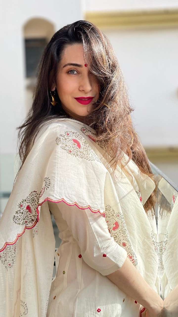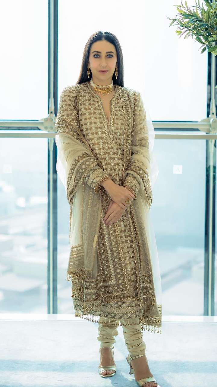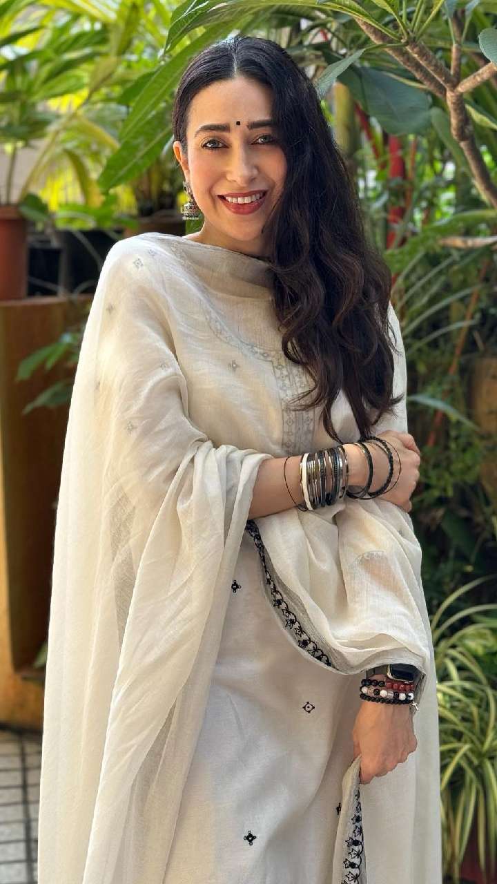 अभिनेत्री का चूड़ीदार वर्क सूट भी काफी जंच रहा है। करिश्मा के इस स्टाइलिश लुक को देखकर कोई उनकी उम्र का अंदाजा नहीं लगा सकता है।