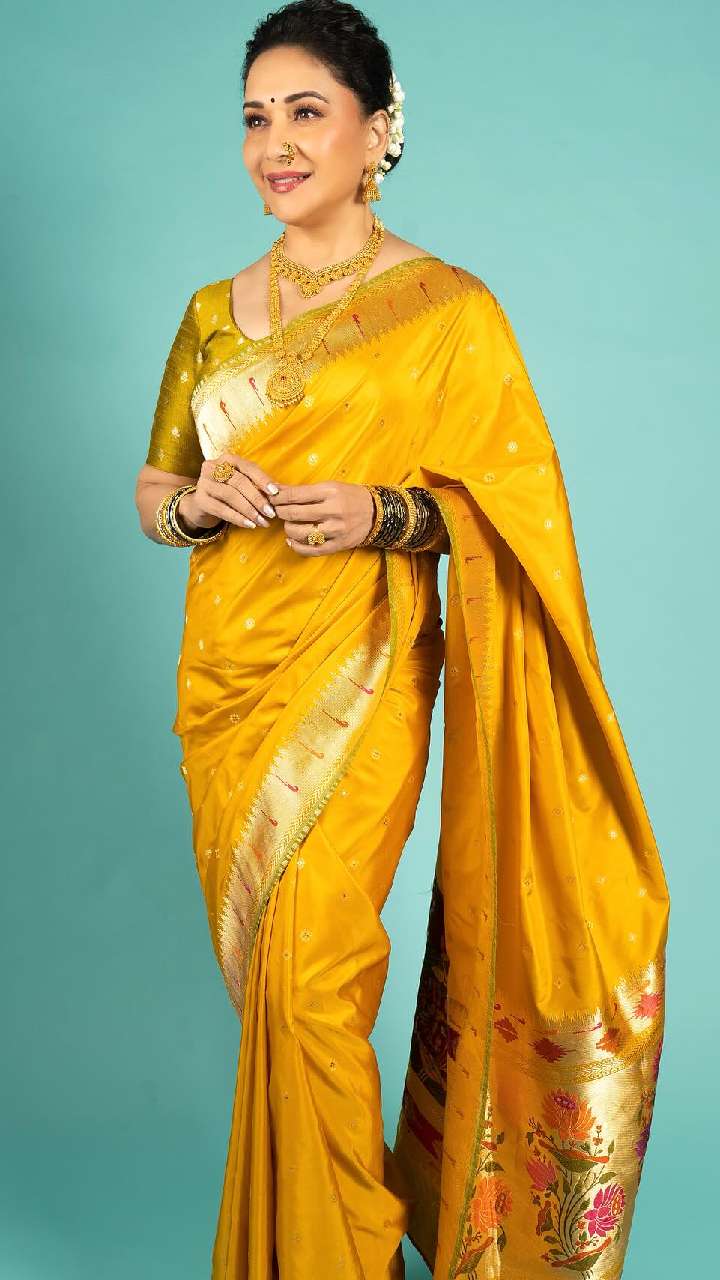 यदि आपको भी माधुरी दीक्षित का रॉयल सिल्क साड़ी कलेक्शन पसंद आया हो तो आप भी इससे आइडिया ले सकती हैं।