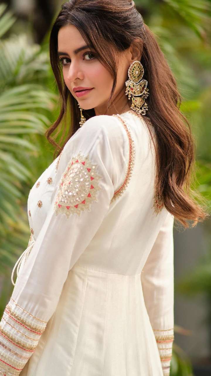 आमना ने सूट के साथ ऑक्सीडाइज बिग झुमके पहनें हैं। जो कि बेहद अट्रैक्टिव लुक दे रहे हैं।