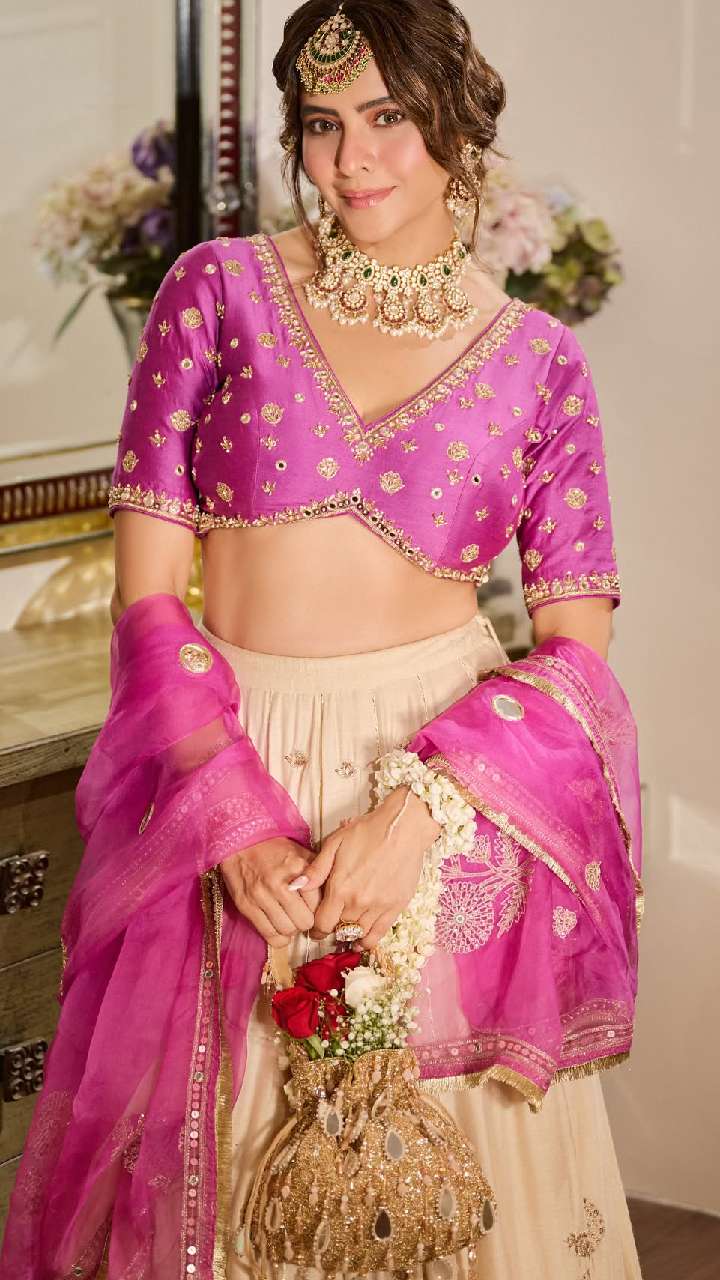 आप प्लेन लहंगे के साथ डिजाइनर और अट्रैक्टिव लुक लेने के लिए एक्ट्रेस जैसा डीप वी नेक ब्लाउज को पेयर कर सकती हैं। यह आपकी आपके लहंगे में चार चांद लग जाएंगे।