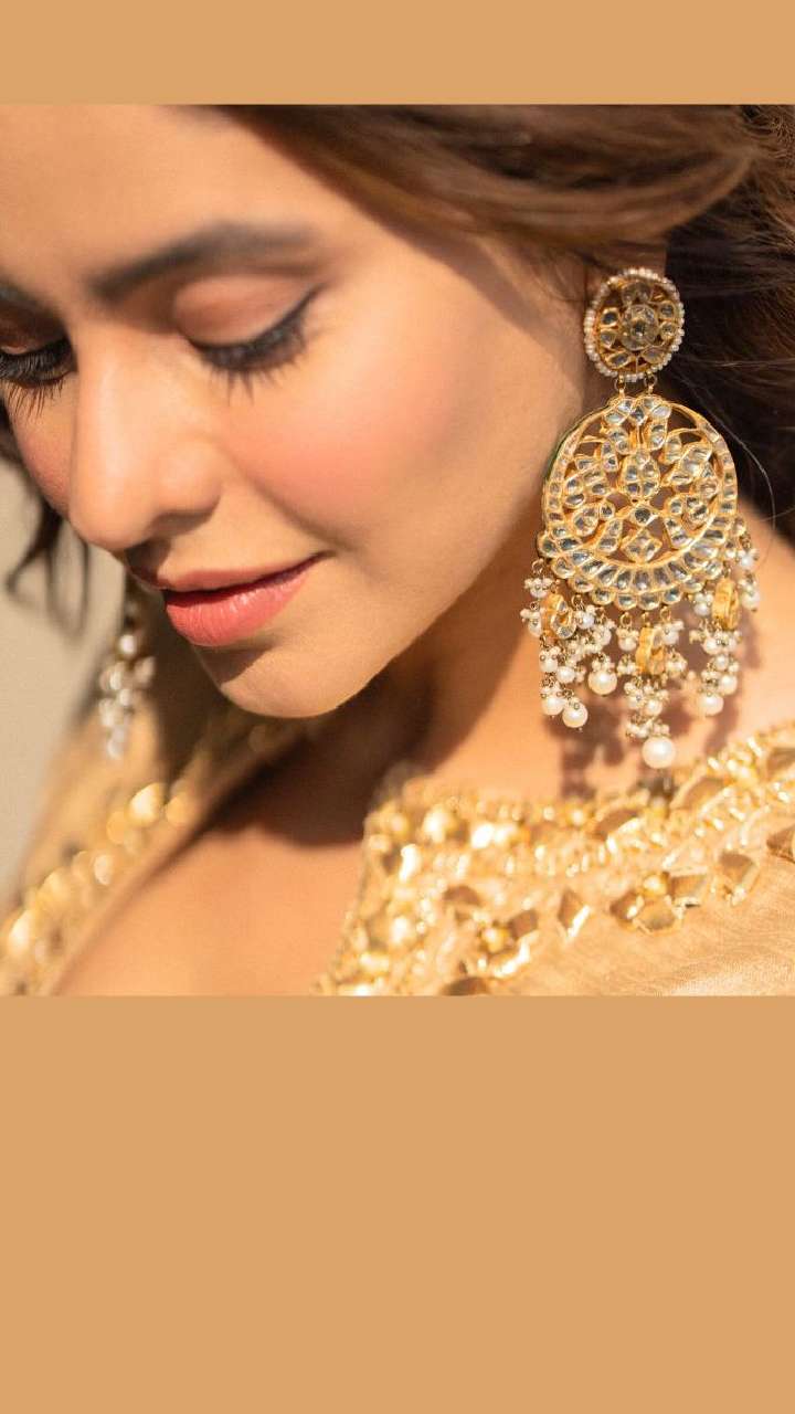 आप भी अपने गोल्डन सूट या साड़ी के साथ ऐसी गोल्डन झुमकी कैरी कर सकती हैं। जो कि आपको एकदम ट्रेडिशनल लुक देगी।