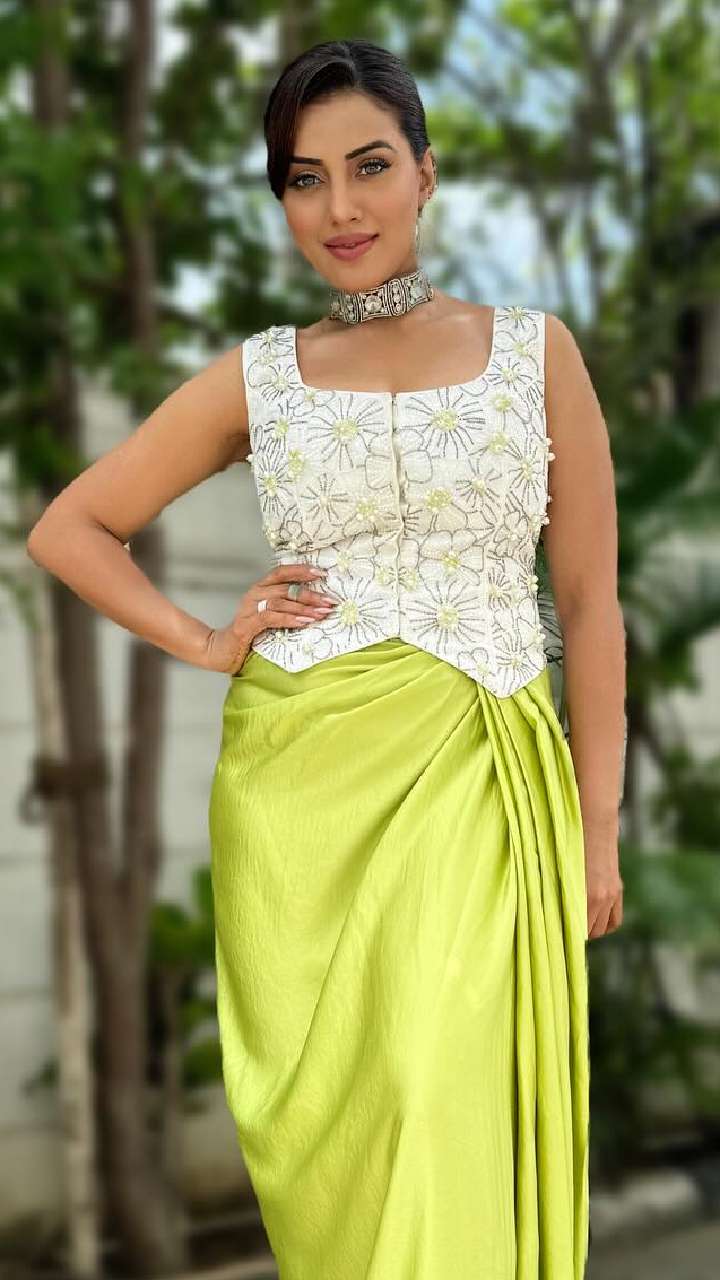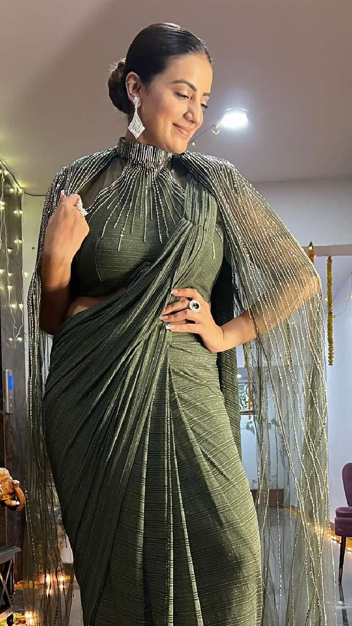 अगर आप साड़ी में पेट छुपाना चाहती हैं, तो एक्ट्रेस के इस ब्लाउज को जरूर ट्राई करें। अक्षरा ने लुक को स्टाइलिश बनाने के लिए को-ऑर्ड सेट ब्लाउज पहना है।
