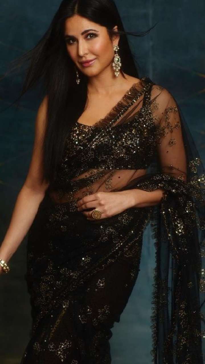 कैटरीना इस साड़ी में बेहद हॉट लग रही है। यंग गर्ल्स कॉकटेल पार्टी में बोल्ड मेकअप के साथ इस साड़ी को पहन सकती हैं।