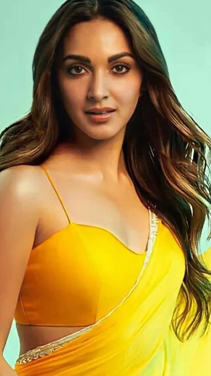येलो कलर की साड़ी के साथ कियारा आडवाणी ने स्ट्रिप ब्लाउज कैरी किया है। एक्ट्रेस का ये लुक काफी हॉट है।