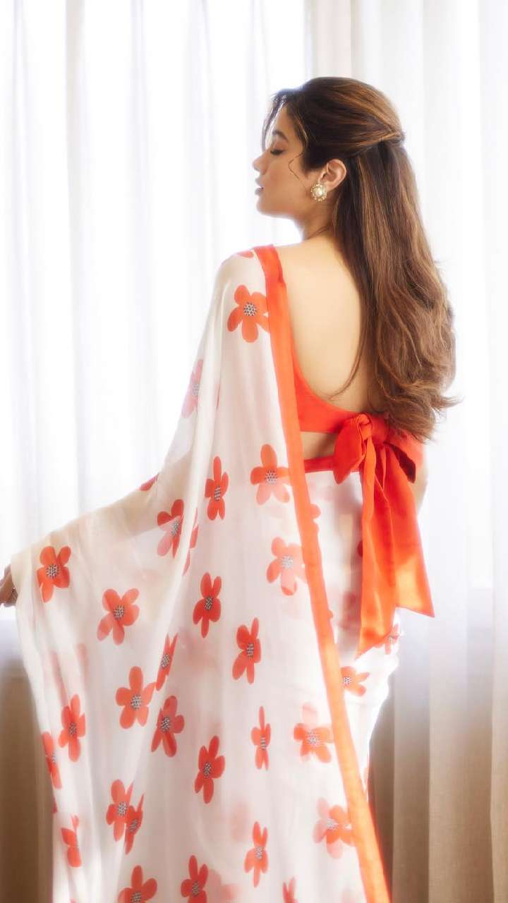 अगर आप कुछ नया ट्राई करना चाहती हैं, तो बो ब्लाउज डिजाइन आपके लिए एकदम बेस्ट है। इस फोटो में जाह्नवी कपूर ने ऑरेंज फ्लोरल साड़ी के साथ बो ब्लाउज कैरी किया हुआ है। अगर आपको रिवीलिंग ब्लाउज पसंद नहीं है, तो आप यह ब्लाउज डिजाइन सिलवा सकती हैं।