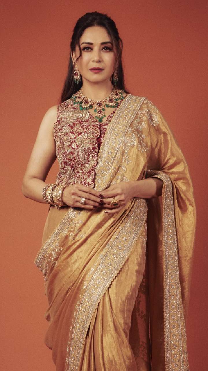 अगर आप ब्लाउज पहनते वक्त पेट दिखाना नहीं चाहती हैं, तो माधुरी दीक्षित का ये ब्लाउज डिजाइन आपके लिए परफेक्ट है। इस फोटो में माधुरी ने कोटी ब्लाउज पहना हुआ है। यह डिजाइन आजकल काफी ट्रेडिंग में है।