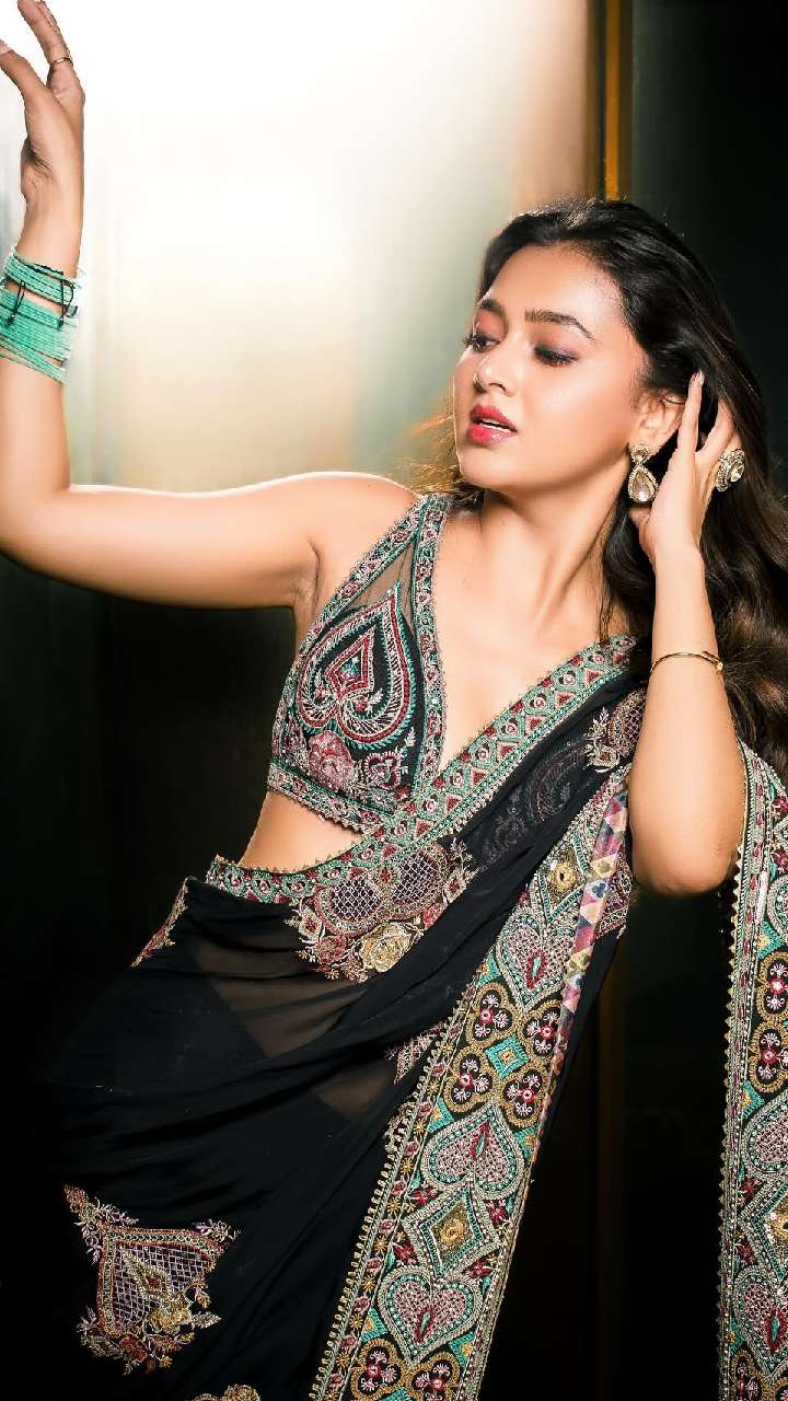 बॉलीवुड एक्ट्रेस तेजस्वी प्रकाश की हॉटनेस के लोग काफी दीवाने हैं। साथ ही, उनका ये साड़ी और ब्लाउज डिजाइन लोगों को काफी आकर्षित कर रहा है। तेजस्वी ने ब्लैक साड़ी के साथ डिप नेक ब्लाउज पहना हुआ है, जिससे आप भी इंस्पिरेशन ले सकती हैं।