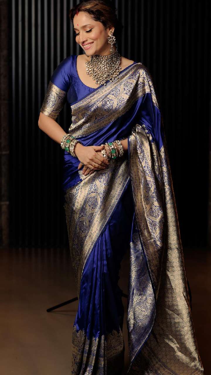 अंकिता लोखंडे के पास सिल्क साड़ी का काफी शानदार कलेक्शन है। आप अंकिता लोखंडे की ये ब्लू साड़ी भी कैरी कर सकती हैं।