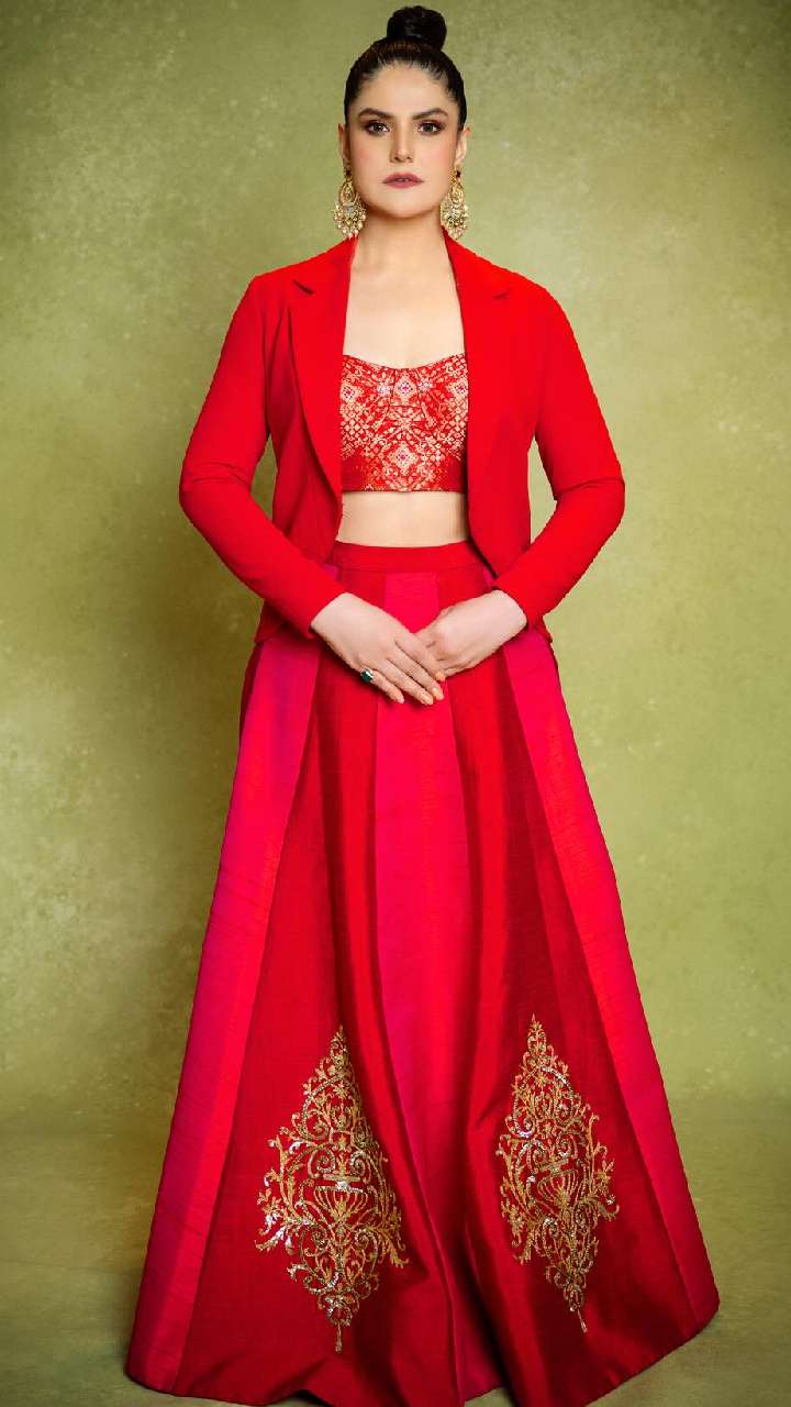 वही जरीन खान ने रेड कलर की इंडो-वेस्टर्न ड्रेस में अपने हुस्न का जलवा बिखेरा। एक्ट्रेस का ये लुक बेहद गॉर्जियस लग रहा है।