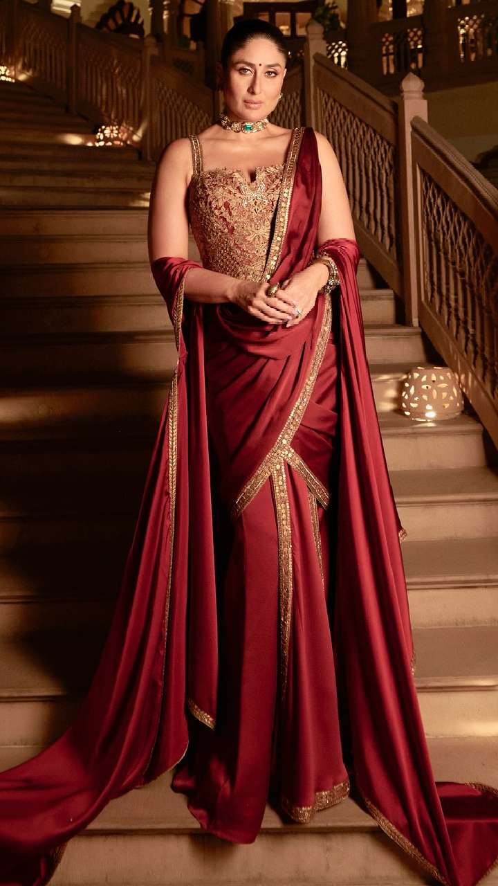 एक्ट्रेस करीना कपूर IIFA Awards में टाइट हेयर स्टाइल और कोर्सेट ब्लाउज के साथ रेड कलर इस डिजाइनर साड़ी में बेहद खूबसूरत लग रही हैं। बेबो ने ग्रीन चोकर नेकलेस कैरी किया है, जिसमें वह बेहद ज्यादा खूबसूरत लग रही हैं।