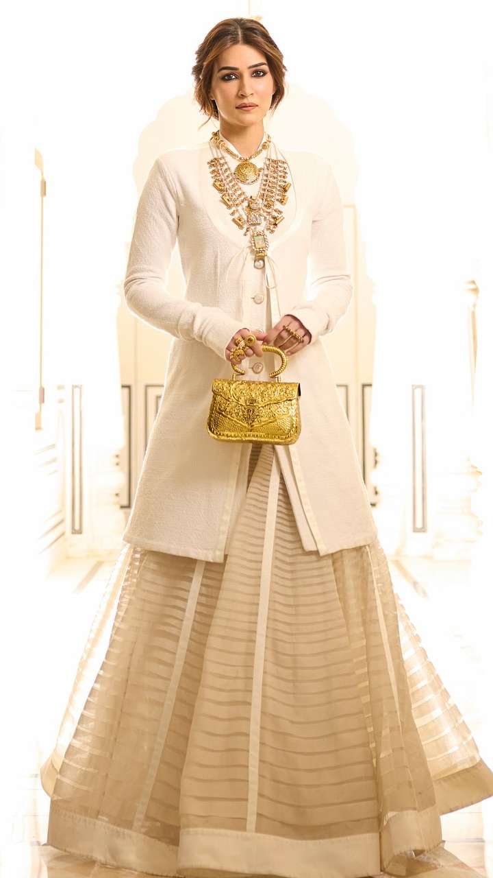IIFA Awards Event में कृति सेनन ने ऑल व्हाइट आउटफिट में कहर ढा रही थी। एक्ट्रेस ने व्हाइट लहंगा स्कर्ट और लॉन्ग ब्लेजर के साथ गोल्डन ज्वेलरी और हैंडबैग को स्टाइल किया है। अभिनेत्री का लुक देखने में बेहद अट्रैक्टिव लुक दे रहा था।