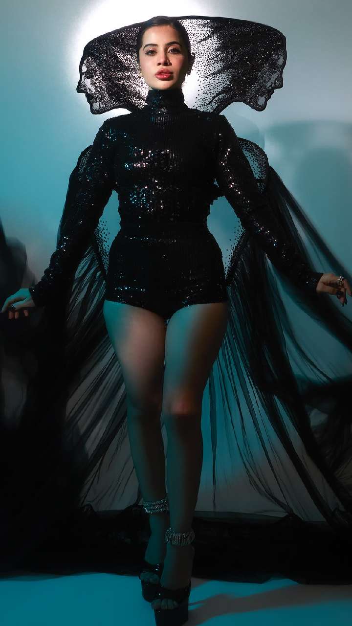 IIFA Awards 2025 में उर्फी ने ब्लैक और डिजाइनर ब्लैक ड्रेस को स्टाइल किया है। एक्ट्रेस हमेशा की तरह नए नए डिजाइन के कपड़े पहनकर फैंस को अपना दीवाना बना लेती हैं। High नेक ड्रेस में एक्ट्रेस का लुक बेहद अट्रैक्टिव लग रहा था।