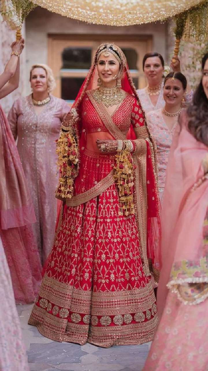 इस लिस्ट में बॉलीवुड की फेमस एक्ट्रेस कटरीना कैफ का नाम भी शामिल है। एक्ट्रेस ने अपनी शादी के दिन पेस्टल छोड़ लाल रंग का जोड़ा पहना था।