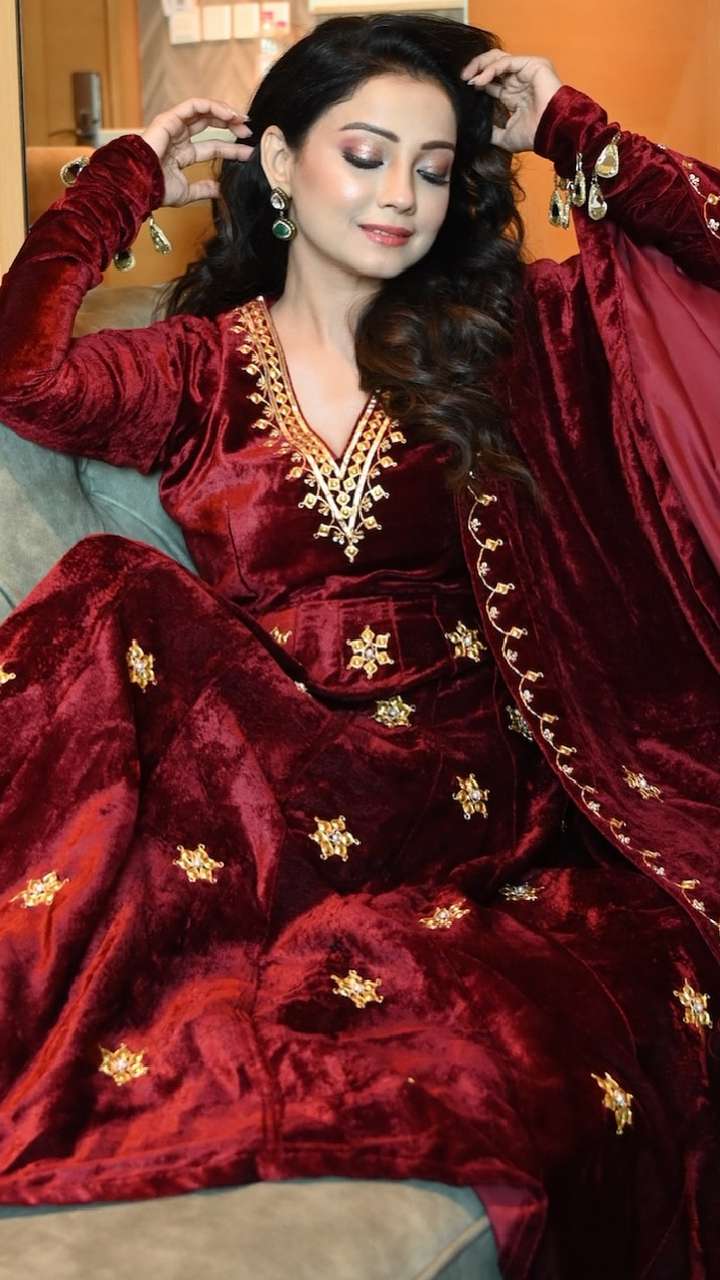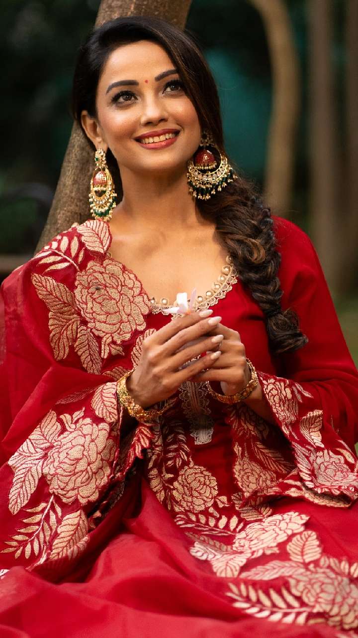 यंग गर्ल्स त्योहार पर एलिगेंट लुक कैरी करने के लिए एक्ट्रेस के सूट के साथ कर्ली हेयर स्टाइल बना सकती हैं।