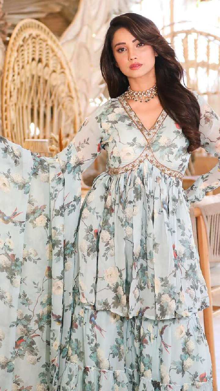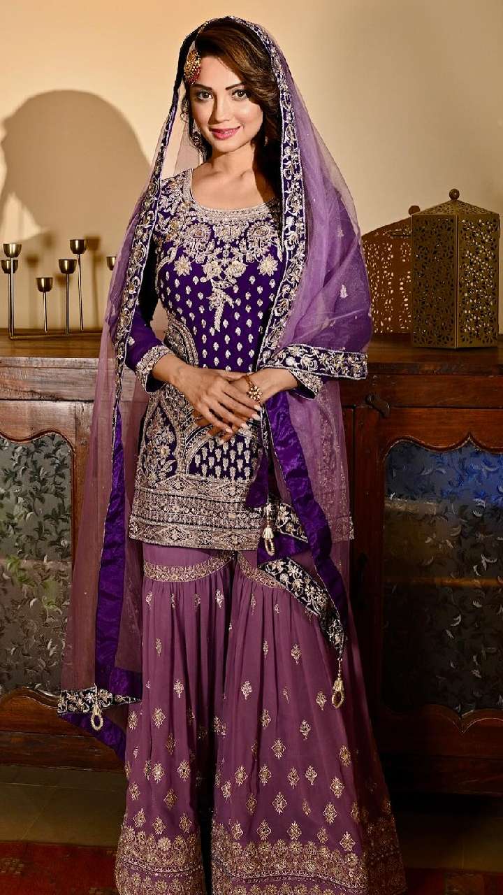 Adaa का हैवी एंब्रॉयडरी वाला शरारा सूट देखने में बेहद रॉयल लुक दे रहा है। आप इसे टाइट बन हेयर स्टाइल और बोल्ड मेकअप के साथ स्टाइल करें।