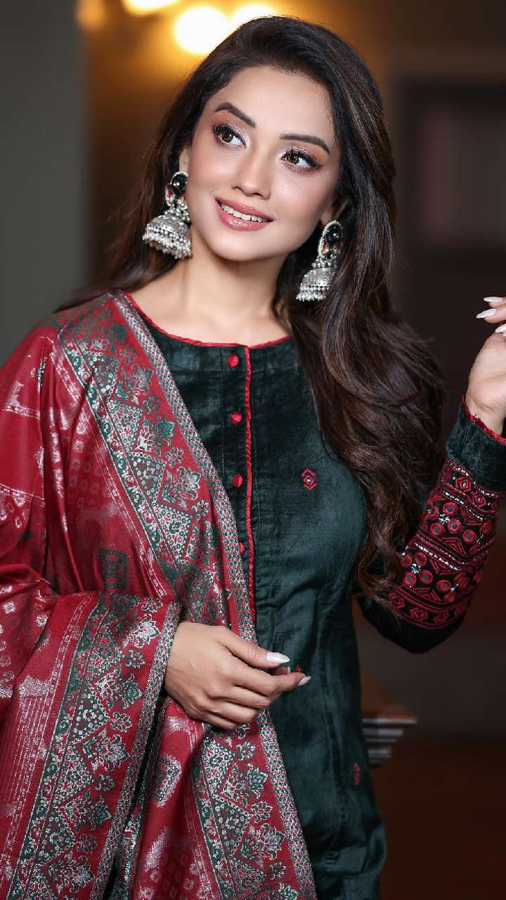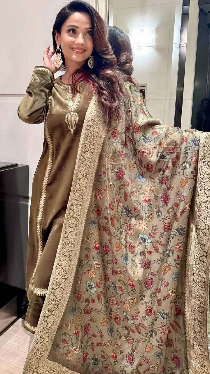 यंग गर्ल्स सिंपल और डिसेंट लुक के लिए एक्ट्रेस के इस सिल्क दुपट्टे वाले सूट को स्टाइल कर सकती हैं। इसका लुक काफी अट्रैक्टिव लग रहा है।