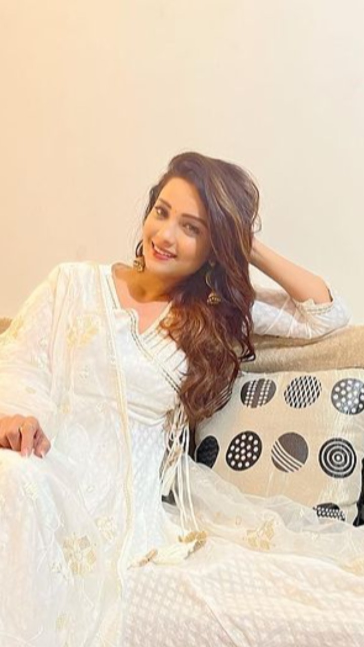 नागिन शो की काली नागिन अपने इस सफेद आउटफिट में बेहद सादगी भरे अंदाज में नजर आ रही हैं।
