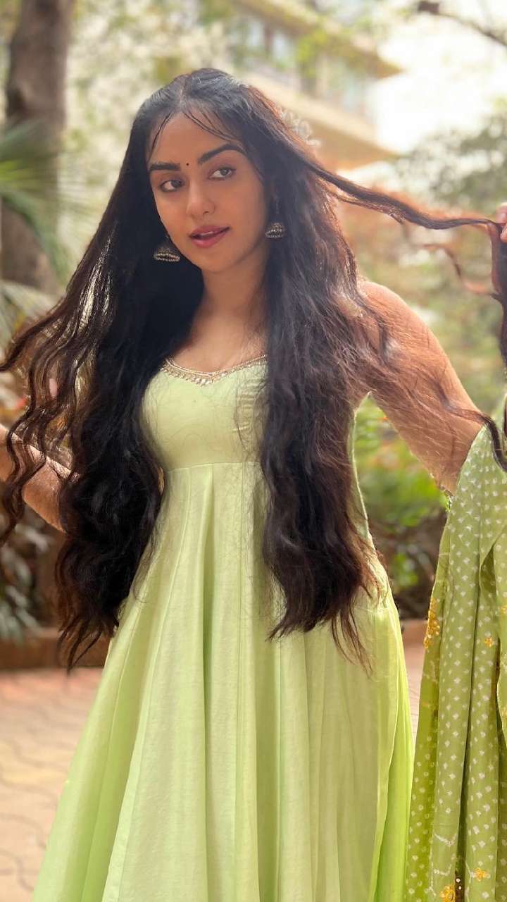 पिस्ता ग्रीन कलर के अनारकली सूट में अदा शर्मा की अदा कातिल है। एक्ट्रेस का हर लुक दिल चुरा लेने वाला होता है।