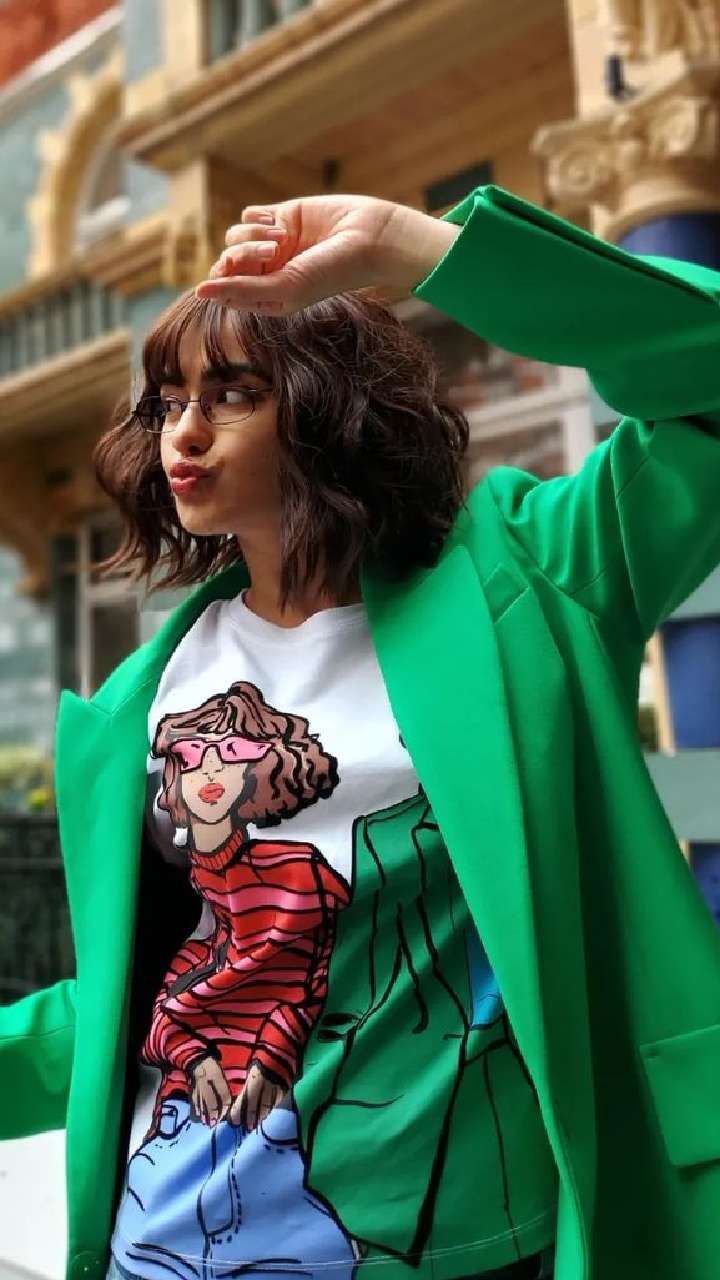 अदा ने वाइट कलर की टी-शर्ट के साथ ग्रीन कलर की जैकेट और जीन्स कैरी किया है।
