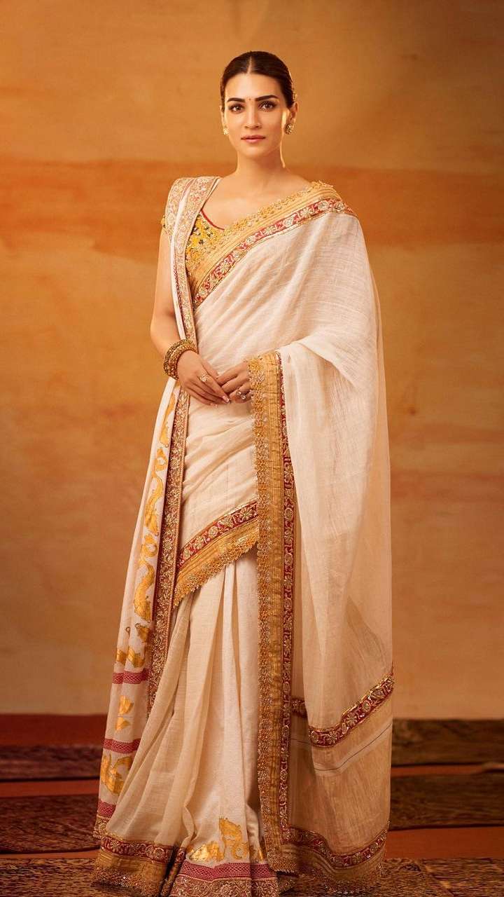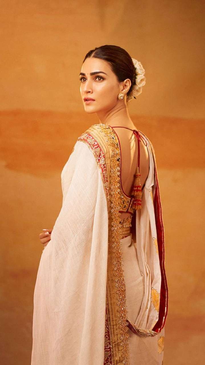 कृति सेनन साड़ी में बेहद खूबसूरत लगती हैं, एक्ट्रेस का ये साड़ी लुक सिंपल के साथ-साथ खूबसूरत भी है।