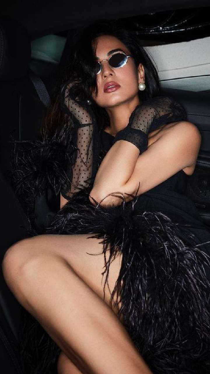 सोनल चौहान ब्लैक लुक में डैजलिंग अदाएं दिखाती हॉटनेस क्वीन लग रही हैं।