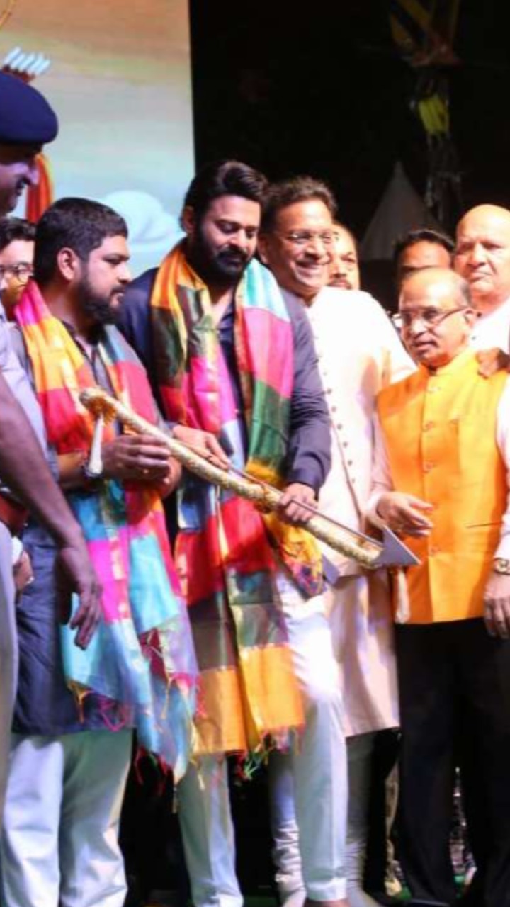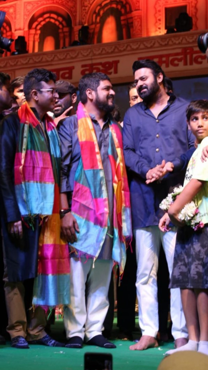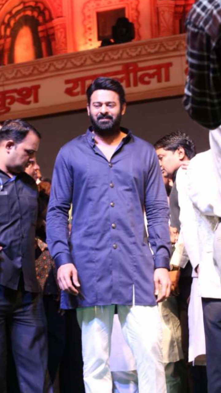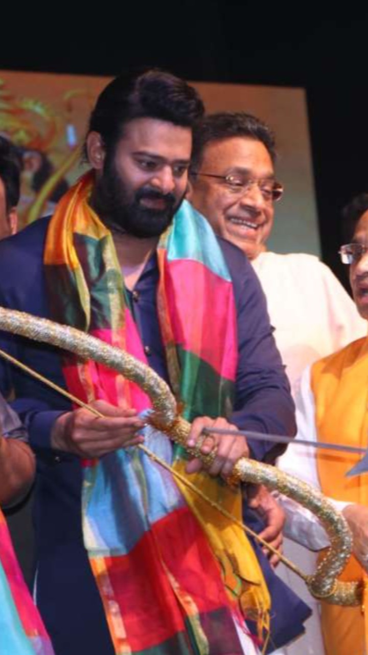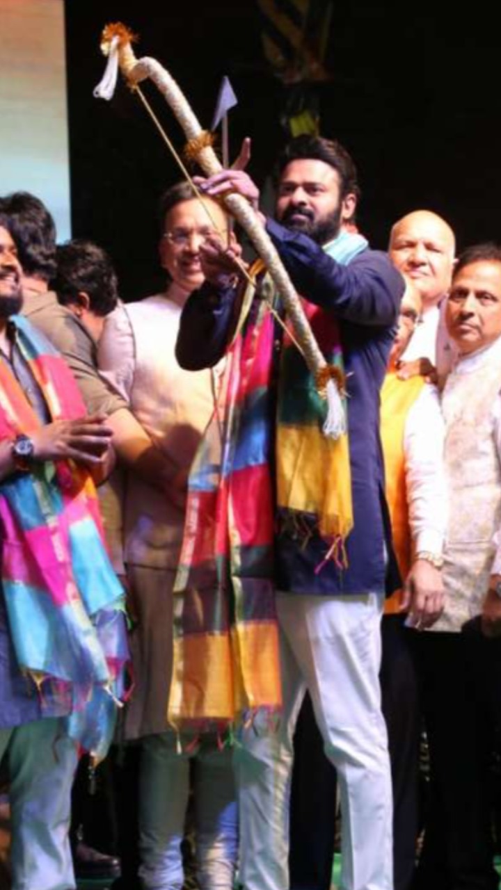 दिल्ली में प्रमोशन के दौरान प्रभास को हाथों में धनुष-बाण लिए रावण के पुतले पर निशाना लगाते देखा जा सकता हैं।